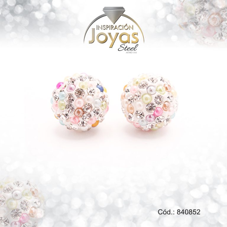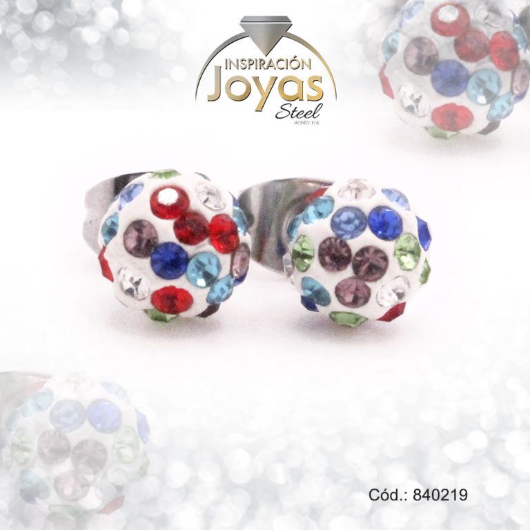 Zarcillo de Acero Esfera Micro Circón Plateado Multi Color – 840219