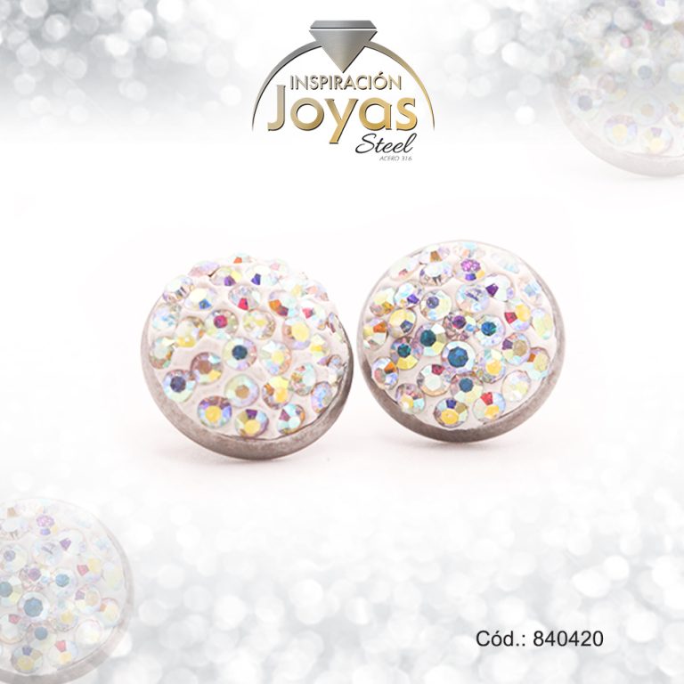 Zarcillo de Acero Esfera Micro Circón Plateado Multi Color – 840852