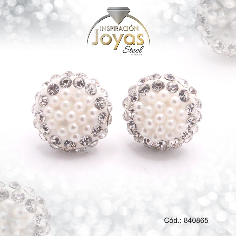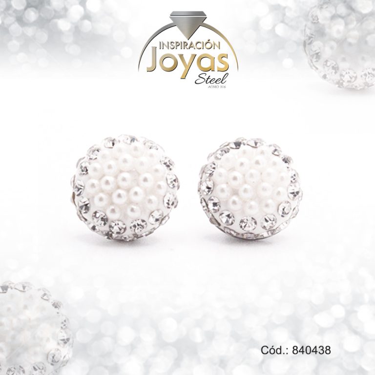 Zarcillo de Acero Esfera Micro Circón Plateado Media Esfera Blanco – 840420