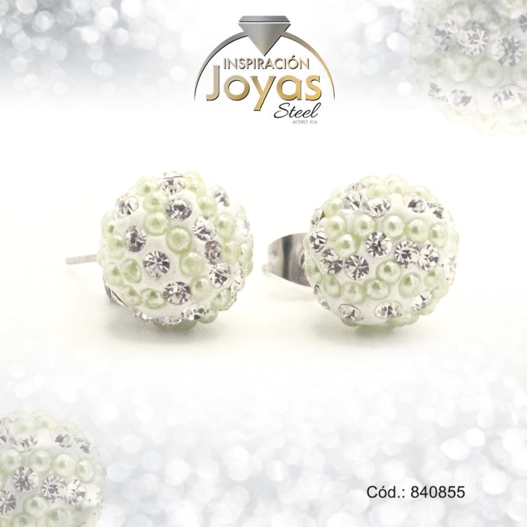Zarcillo de Acero Esfera Micro Circón Plateado Blanco/Verde – 840855