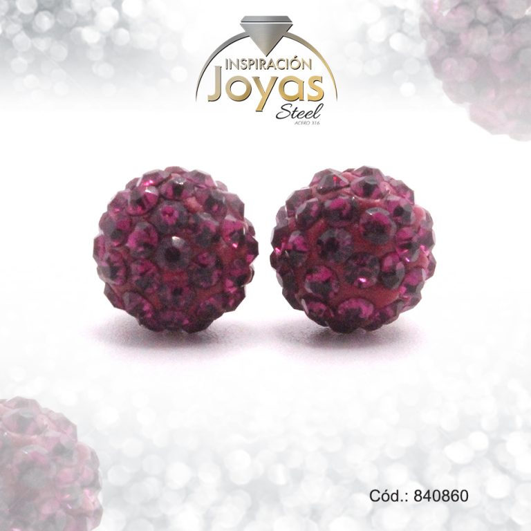 Zarcillo de Acero Esfera Micro Circón Plateado Morado – 840860