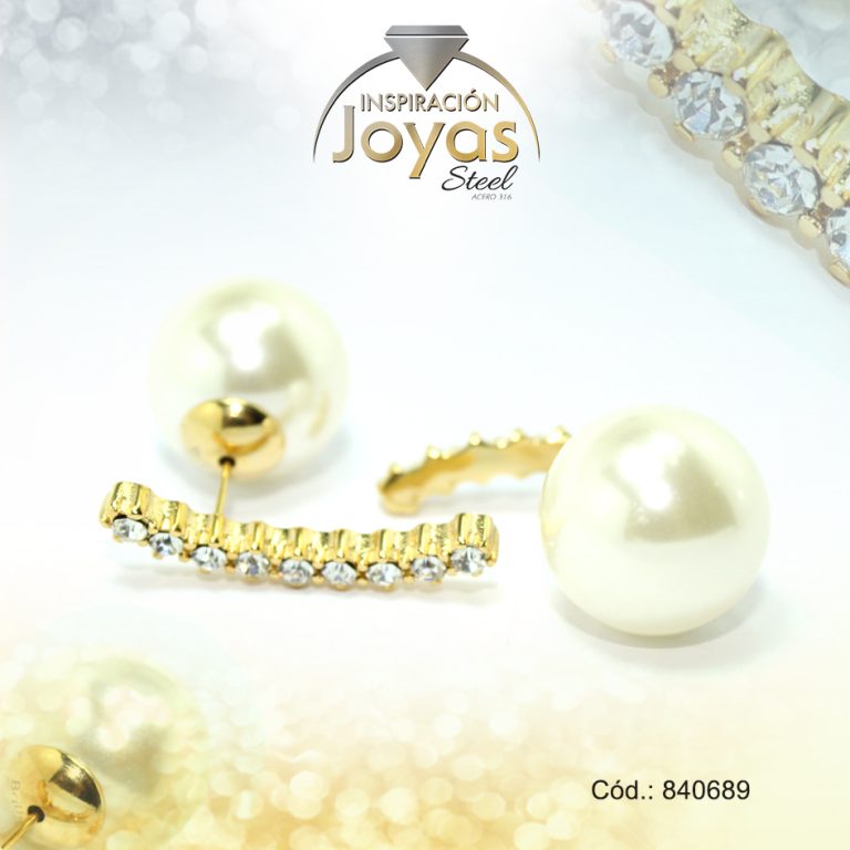 Zarcillo de Acero Variado Doble Aleación Perla Dorado Esfera – 840689