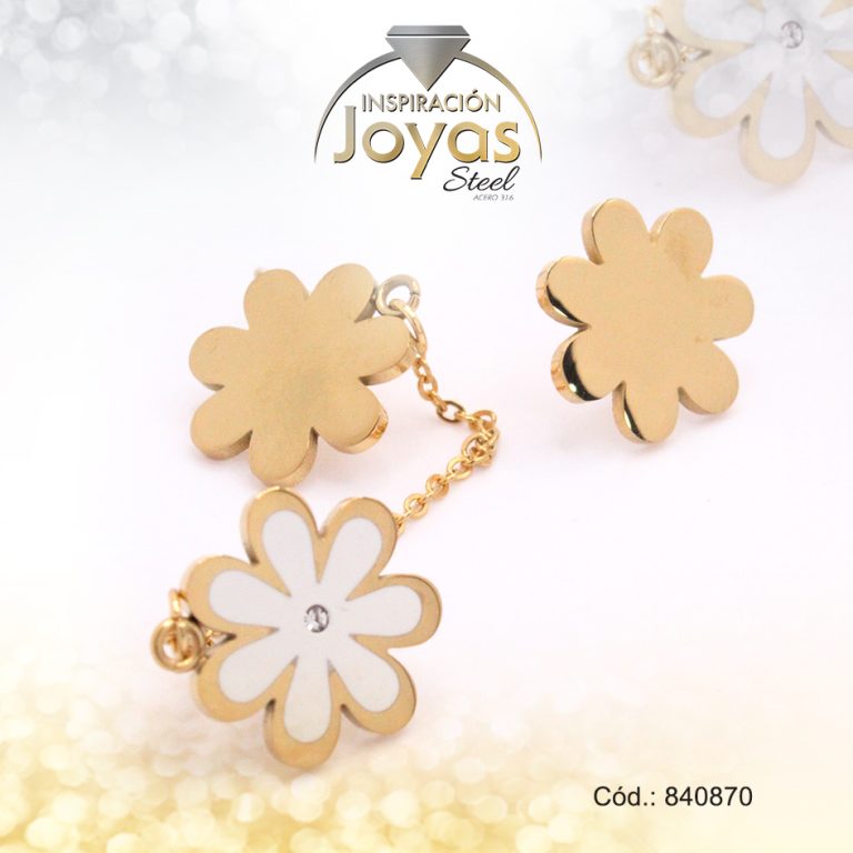 Zarcillo de Acero Variado Combinado Aleación Esmalte Dorado Flor – 840870