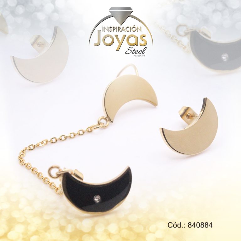Zarcillo de Acero Variado Combinado Aleación Esmalte Dorado Luna – 840884