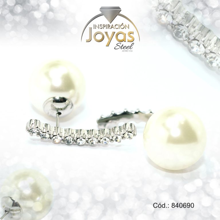 Zarcillo de Acero Variado Doble Aleación Perla Plateado Esfera – 840690