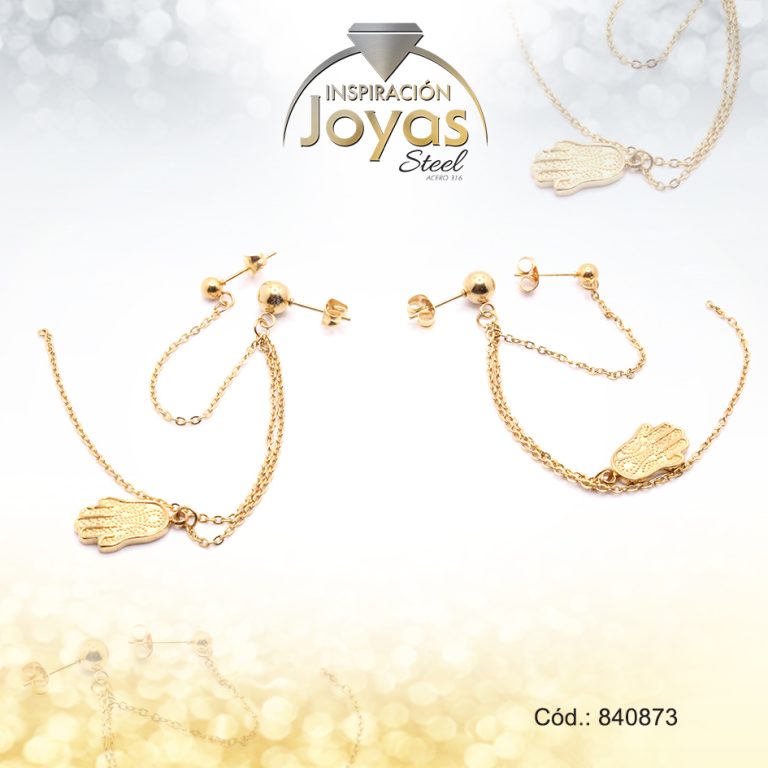 Zarcillo de Acero Variado Doble Dorado Mano De Fatima – 840873