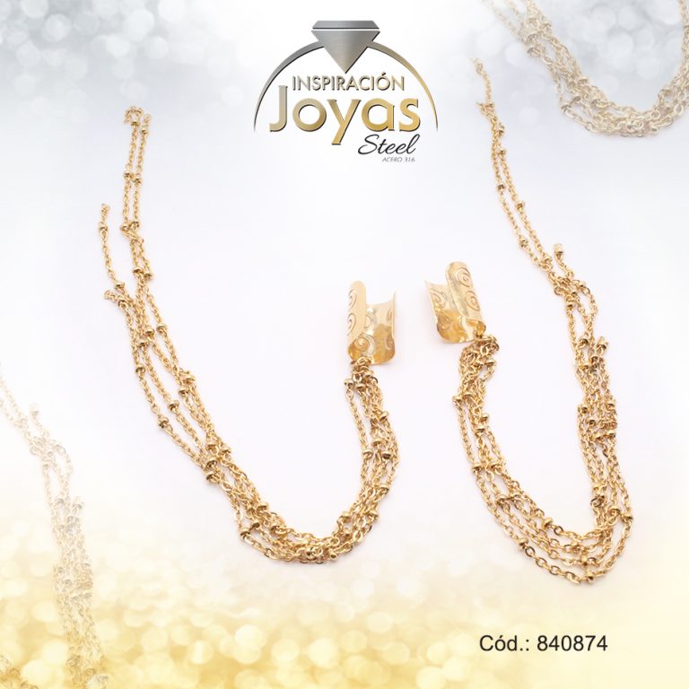 Zarcillo de Acero Variado Orejera Dorado Cadenas – 840874