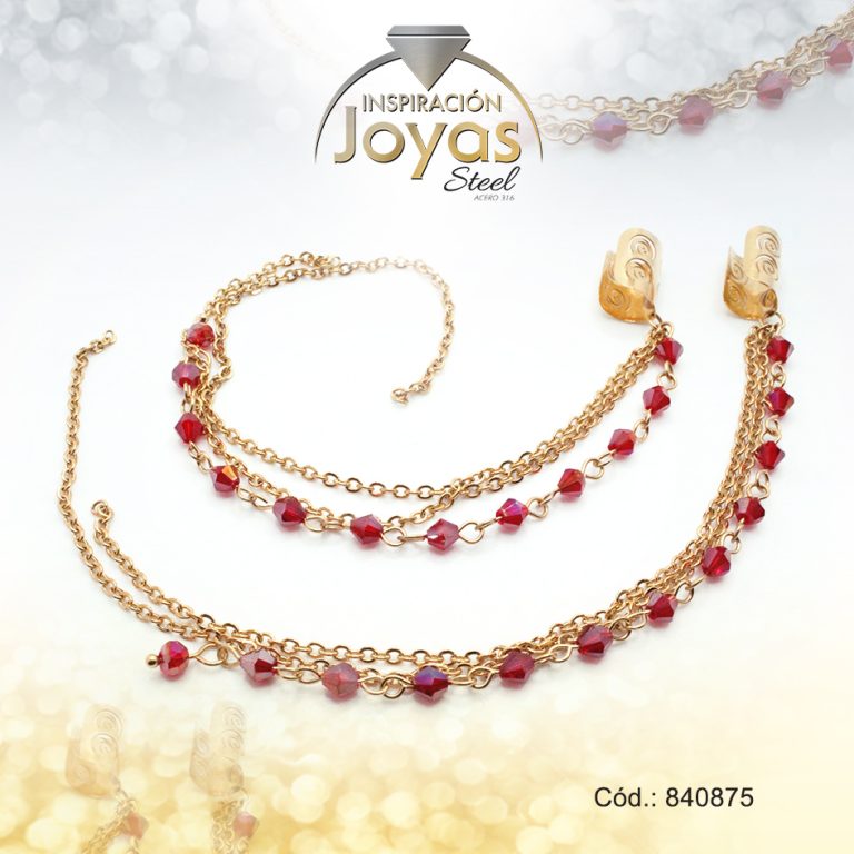 Zarcillo de Acero Variado Orejera Dorado Cadenas – 840875