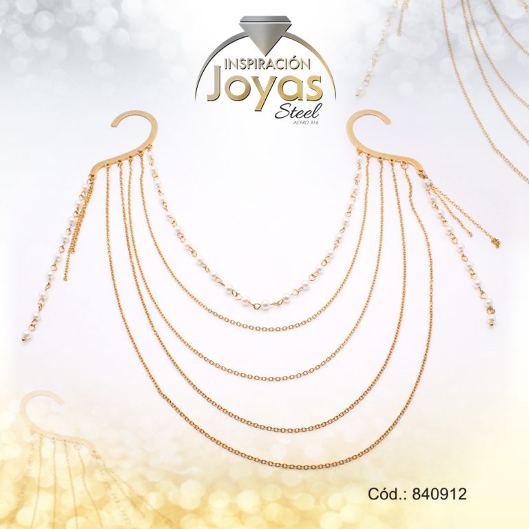 Zarcillo de Acero Variado Orejera Dorado Cadenas – 840912