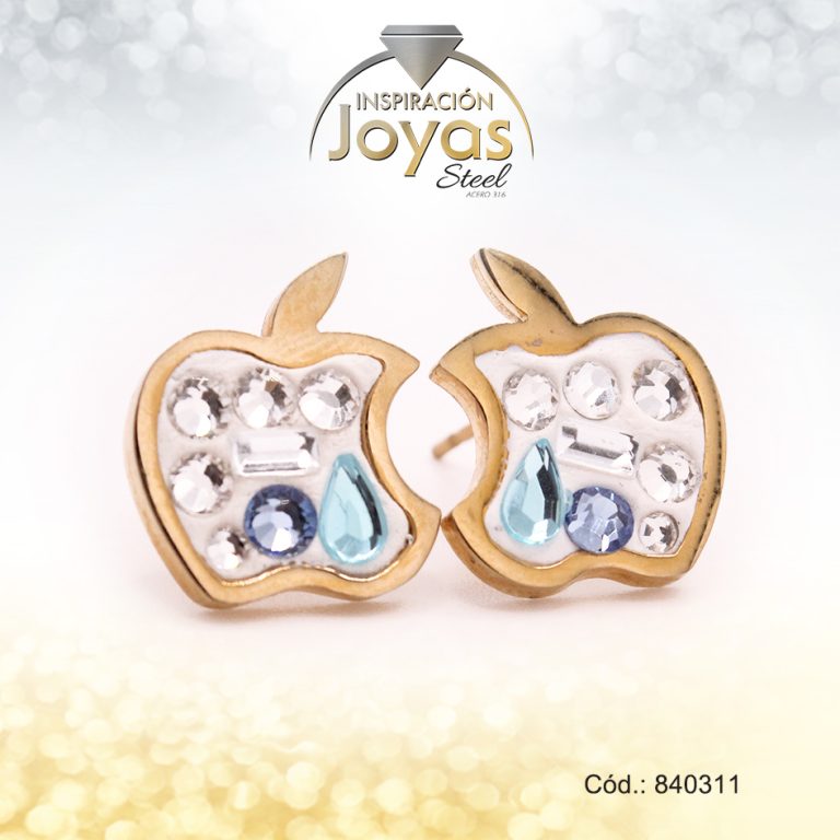 Zarcillo de Acero – Aleación Circón – Dorado – Manzana Multi Color – 840311