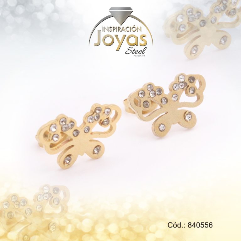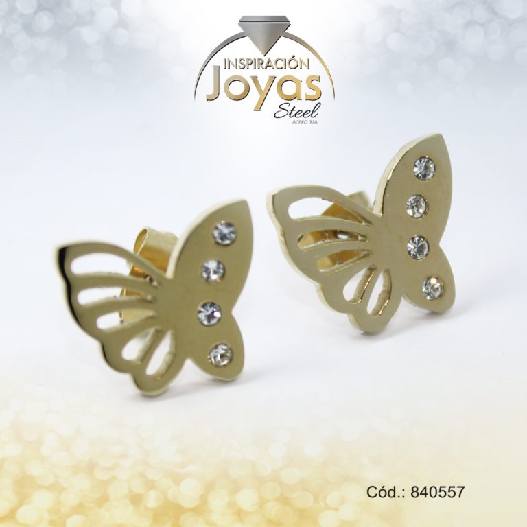 Zarcillo de Acero – Aleación Circón – Dorado – Mariposa – 840557