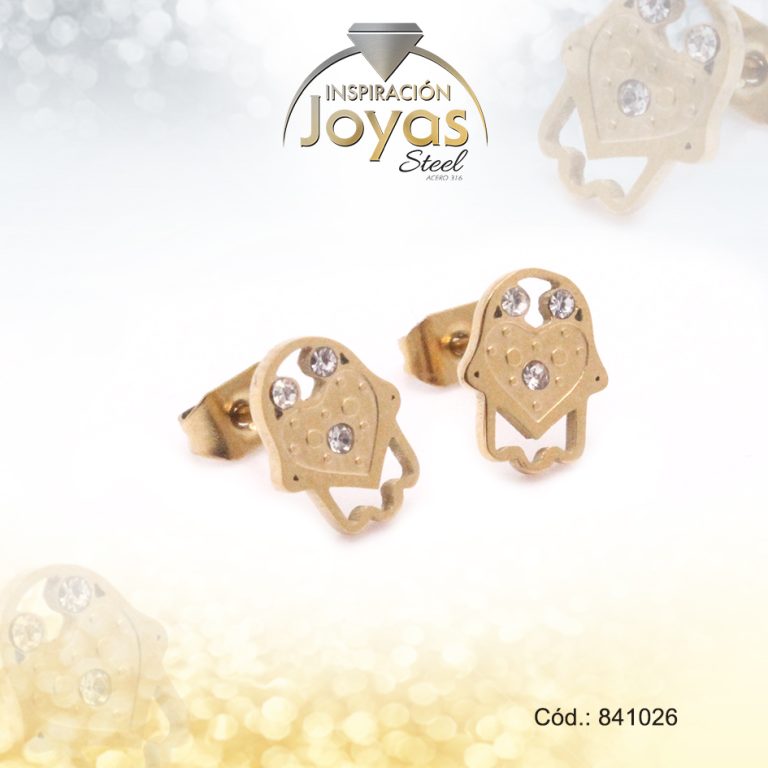 Zarcillo de Acero – Aleación Circón – Dorado – Mano De Fatima – 841026