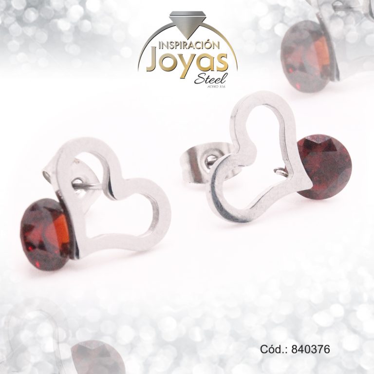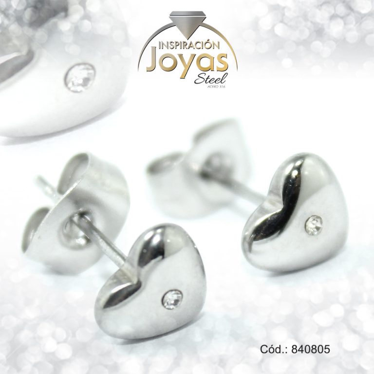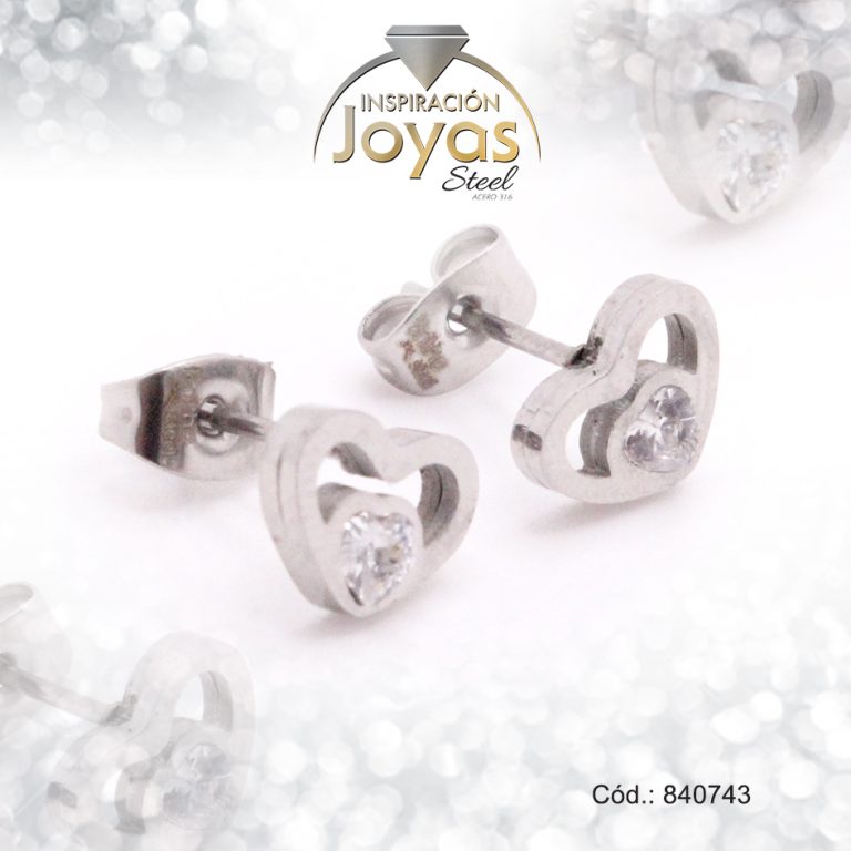 Zarcillo de Acero – Aleación Circón – Plateado – Corazón – 840376