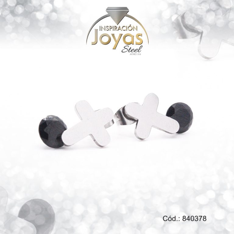 Zarcillo de Acero – Aleación Circón – Plateado – Cruz Negro – 840378