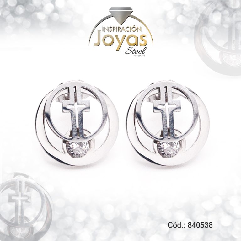Zarcillo de Acero – Aleación Circón – Plateado – Cruz – 840538