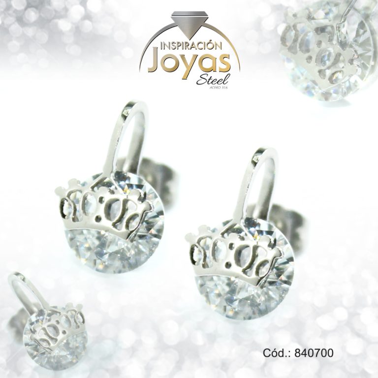 Zarcillo de Acero – Aleación Circón – Plateado – Corona – 840700