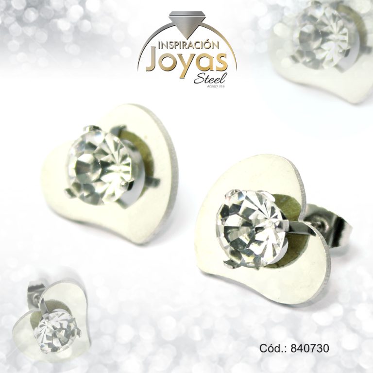 Zarcillo de Acero – Aleación Circón – Plateado – Corazón – 840730