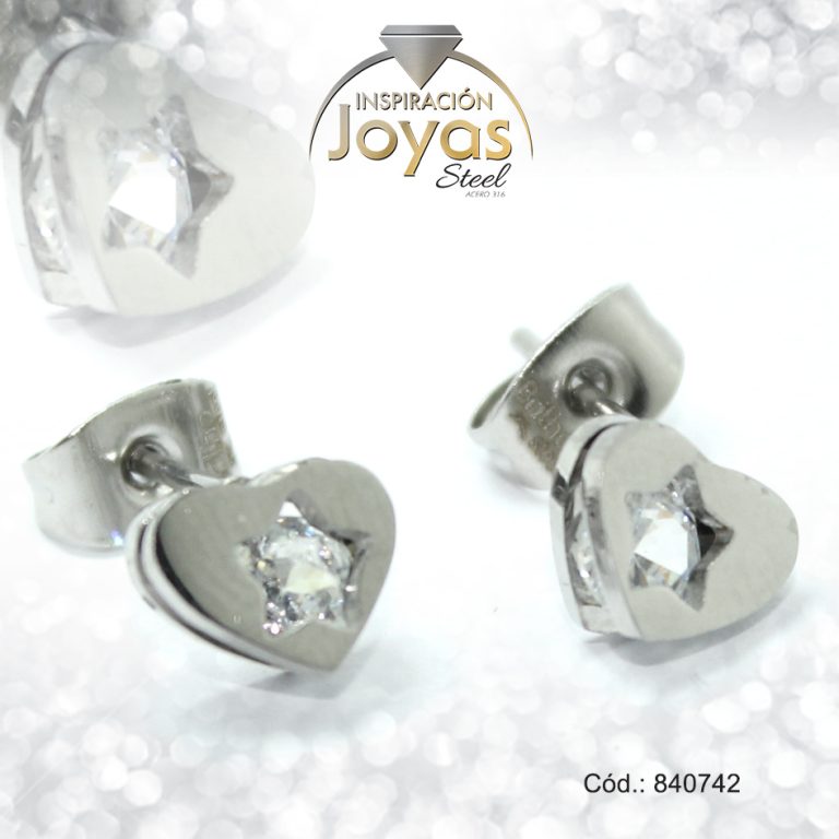 Zarcillo de Acero – Aleación Circón – Plateado – Corazón – 840742