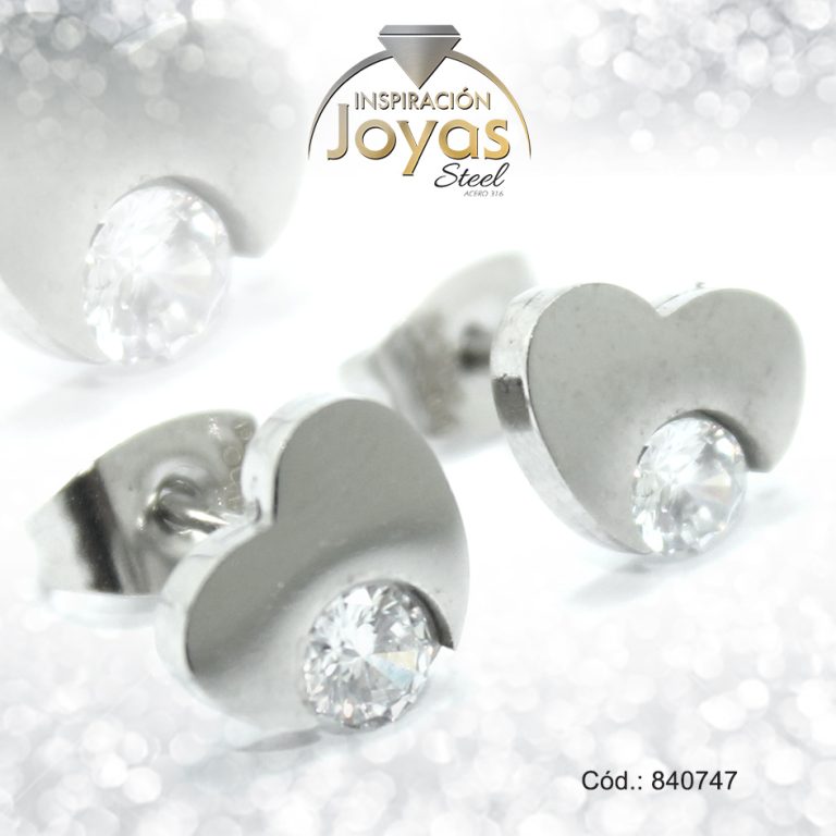 Zarcillo de Acero – Aleación Circón – Plateado – Corazón – 840747