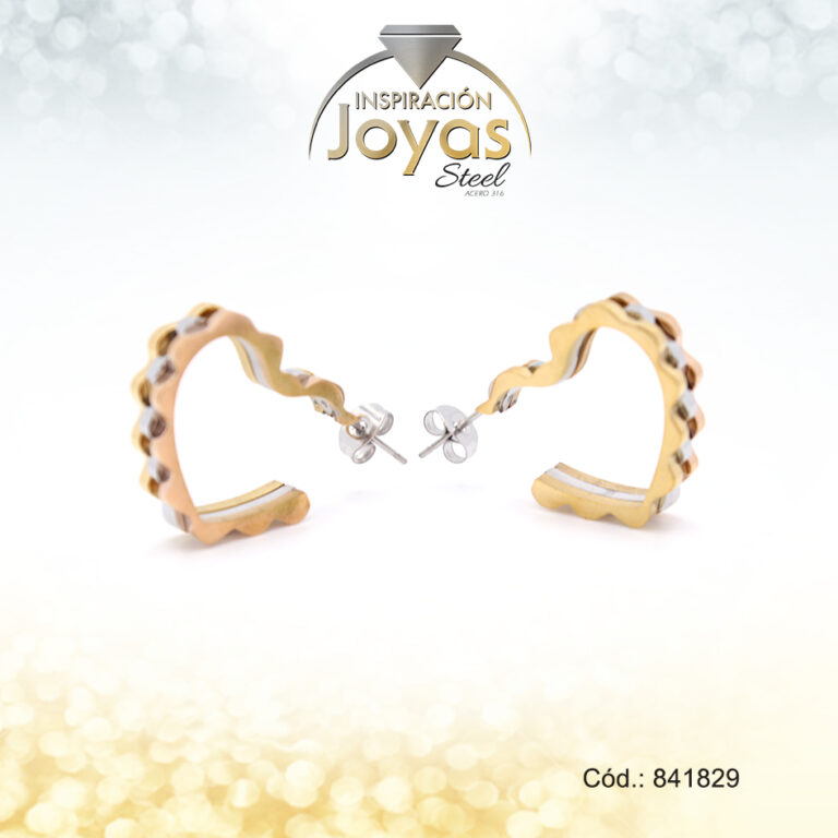 Zarcillo-Acero-3 Tonos-Tipo Argolla–Corazon_Trancadero Mariposa – 841829