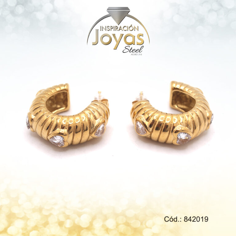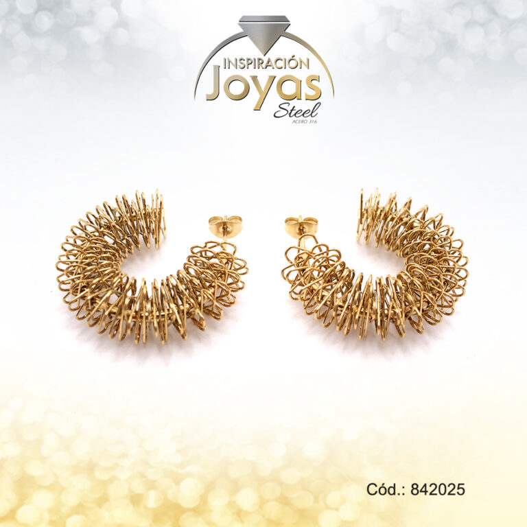 Zarcillo Acero Dorado Tipo Argolla Con Textura De Resorte – 842025