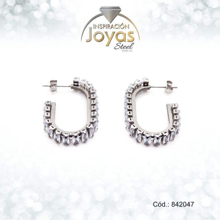 Zarcillo Acero Plateado Tipo Argolla En Forma De U Con Circon Blanco – 842047