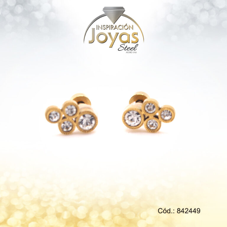 Zarcillo Acero Dorado Estilo Argolla 3 Estrellas Cristal Colores – 842411