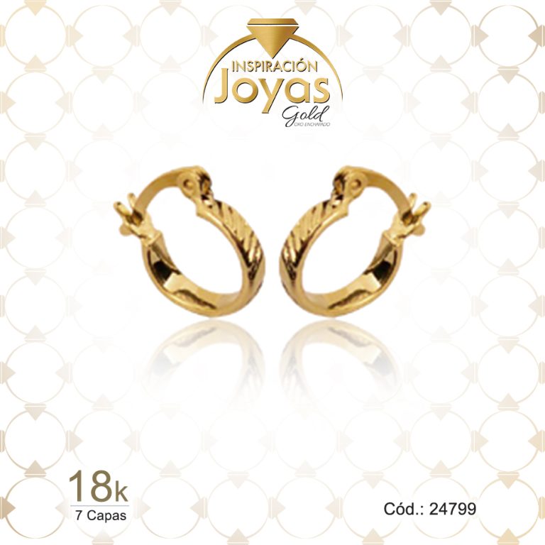 Argolla de Oro Enchapado Dorado Variado Repujado Diámetro: 1,1 Ancho: 0,2 – 24799