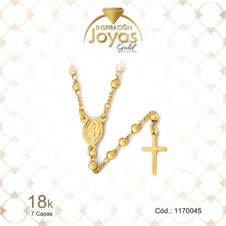 Rosario de Oro Enchapado Dorado Variado Medalla, Cruz Largo: 45 Ancho: 0,2 – 1170045