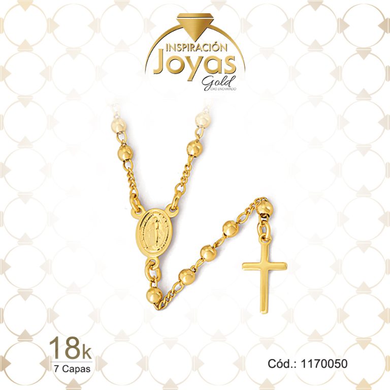 Rosario de Oro Enchapado Dorado Variado Medalla, Cruz Largo: 50 Ancho: 0,2 – 7755950