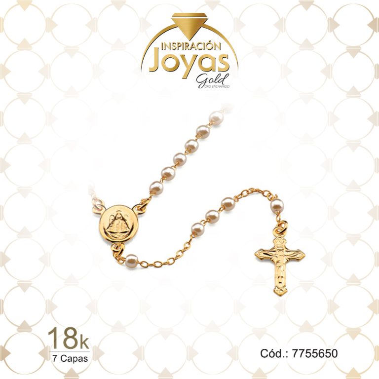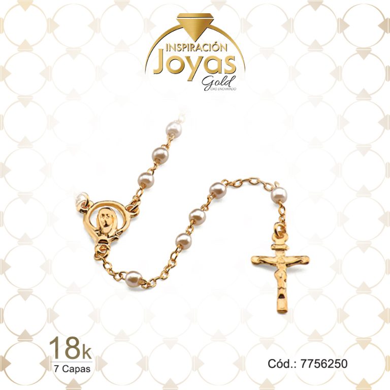 Rosario de Oro Enchapado Dorado Aleación Perla Medalla, Cruz Largo: 45 Ancho: 0,2 – 7755645