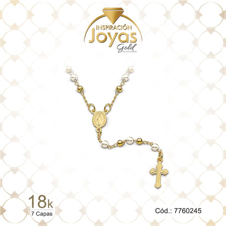 Rosario de Oro Enchapado Dorado Variado Medalla, Cruz Largo: 45 Ancho: 0,2 – 7755945