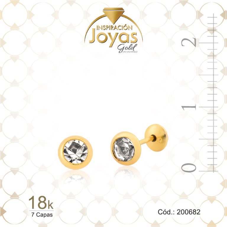 Zarcillo de Oro Enchapado Dorado Bebé Circón Solitario Blanco Ancho: 0,5 Alto: 0,5 – 200684