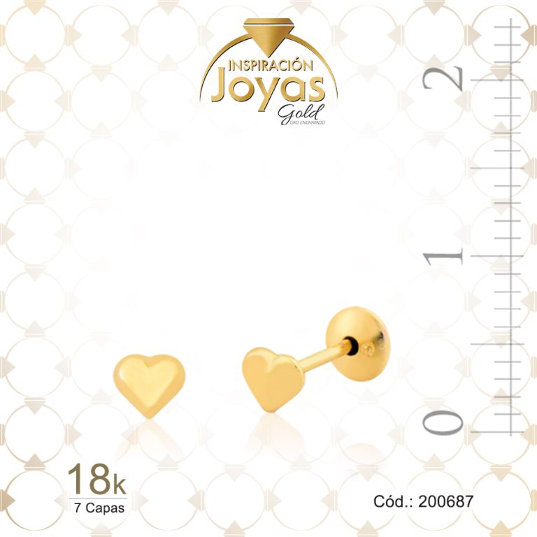 Zarcillo de Oro Enchapado Dorado Bebé Corazón Ancho: 0,3 Alto: 0,3 – 200687