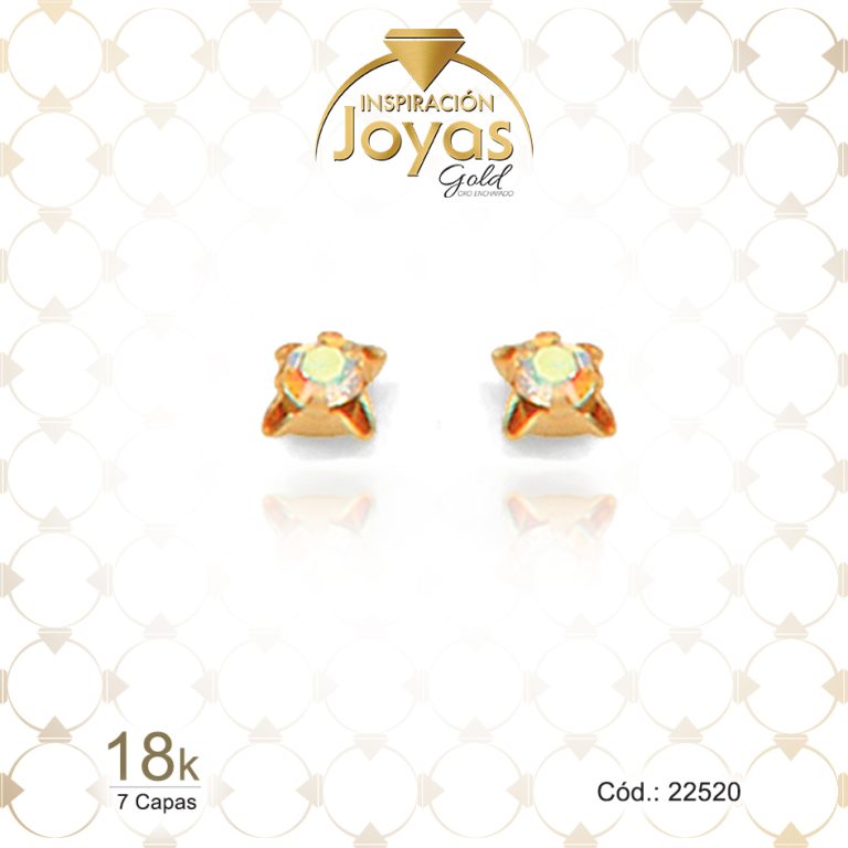 Zarcillo de Oro Enchapado Dorado Bebé Circón Solitario Blanco Ancho: 0,4 Alto: 0,4 – 22520