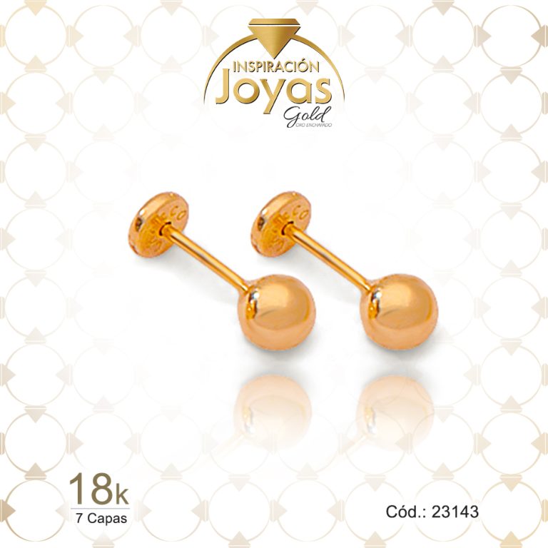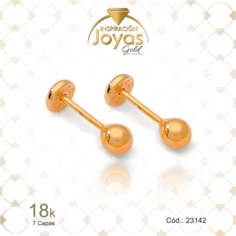 Zarcillo de Oro Enchapado Dorado Bebé Esfera Ancho: 0,3 Alto: 0,3 – 23143