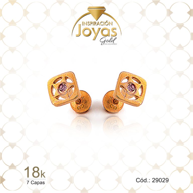 Zarcillo de Oro Enchapado Dorado Bebé Circón Solitario Rojo ó Rosado Ancho: 0,3 Alto: 0,3 – 200681