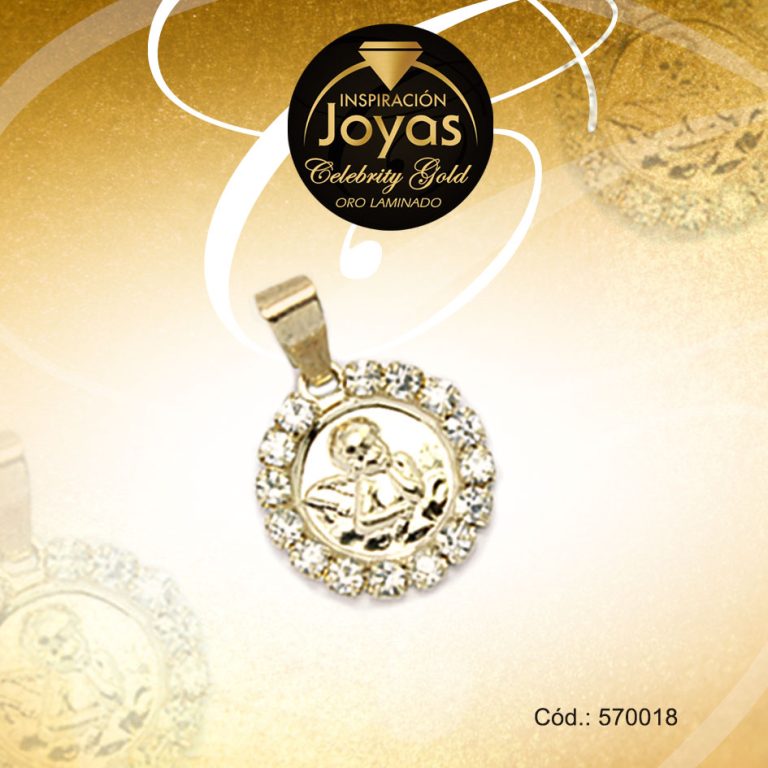 Dije Celebrity Gold Tono Dorado Religioso Micro Circón Trancadero: 0 A: 2 cm L: 3 cm Divino Niño – 570024
