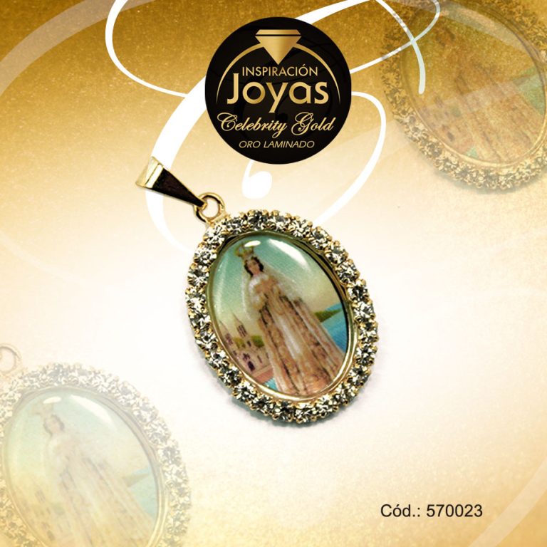 Dije Celebrity Gold Tono Dorado Religioso Micro Circón Trancadero: 0 A: 2 cm L: 3 cm Virgen de Fatima – 570022