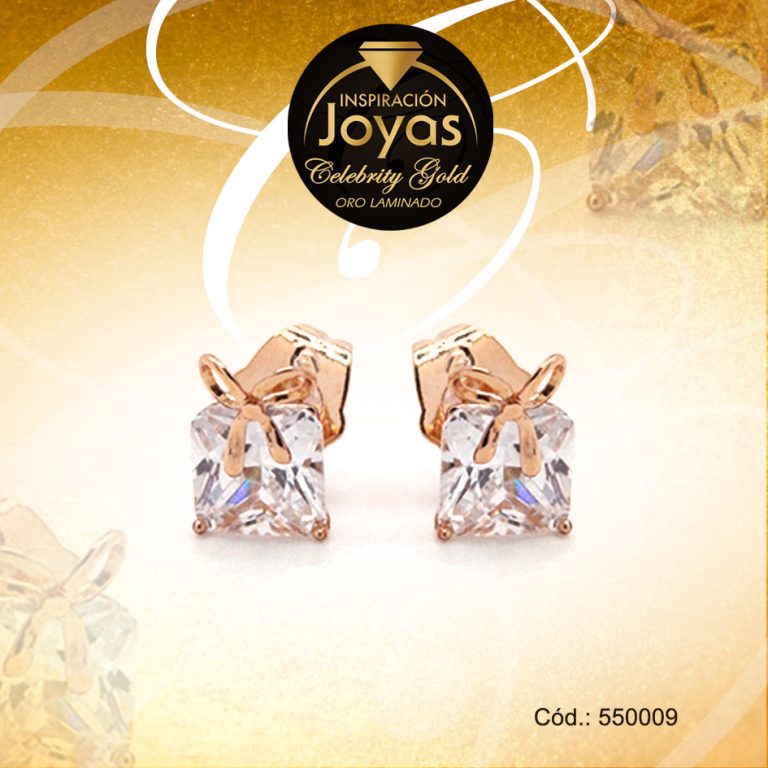 Zarcillo Celebrity Gold Tono Dorado Aleación Circón Trancadero: Mariposa A: 0,9 cm L: 0,4 cm Cuadrado con Lazo – 550009