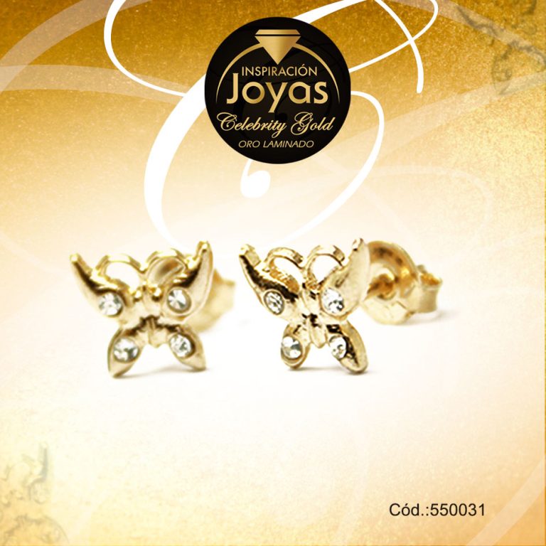 Zarcillo Celebrity Gold Tono Dorado Aleación Circón Trancadero: Mariposa A: 0,9 cm L: 0,9 cm Mariposa – 550031