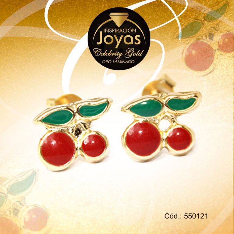 Zarcillo Celebrity Gold Tono Dorado Aleación Esmalte Trancadero: Mariposa A: 0,7 cm L: 0,7 cm Cereza Rojo y Verde – 550121