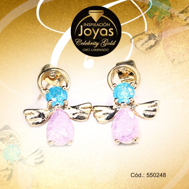 Zarcillo Celebrity Gold Tono Dorado Aleación Piedra Trancadero: Mariposa A: 1,5 cm L: 1,5 cm Ángel Rosado y Turquesa – 550248