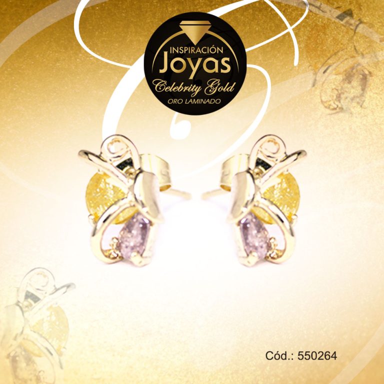Zarcillo Celebrity Gold Tono Dorado Aleación Piedra Trancadero: Mariposa A: 1,5 cm L: 1 cm Mariposa Amarillo y Lila – 550264