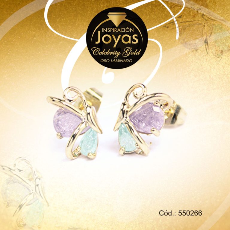 Zarcillo Celebrity Gold Tono Dorado Aleación Piedra Trancadero: Mariposa A: 1,5 cm L: 1 cm Mariposa Lila y Azul – 550266