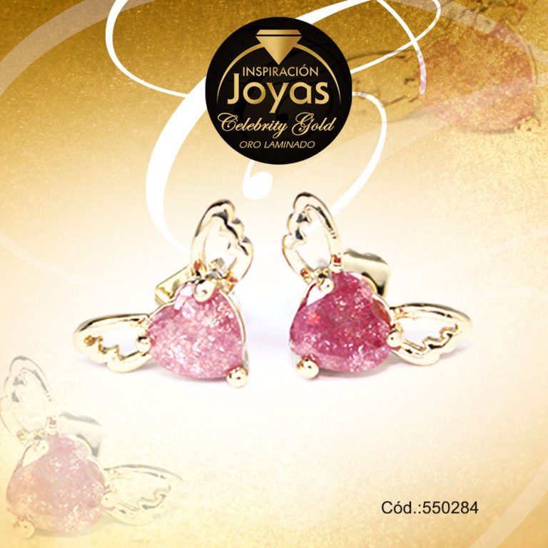 Zarcillo Celebrity Gold Tono Dorado Aleación Piedra Trancadero: Mariposa A: 1,5 cm L: 0,5 cm Corazón con Alas Rosado – 550284