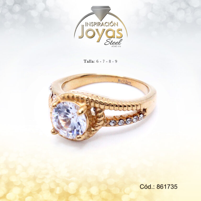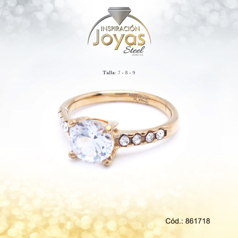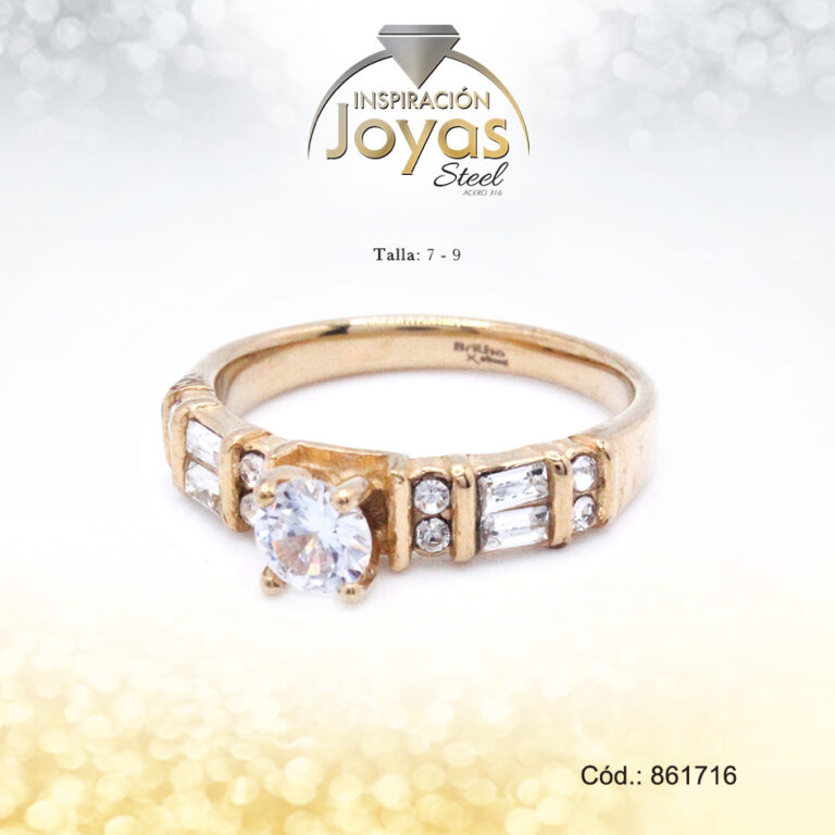 Anillo – Acero – Forma De Solitario – Dorado – Circon Blanco T: 9 – 86171890