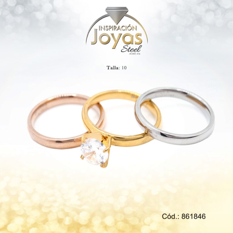 Anillo – Acero – Aros + Solitario – Tres Tonos – Circon Blanco T: 10 – 86184610