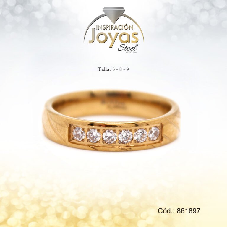 Anillo – Acero – Cintillo – Dorado – Repuje/Circon Blanco T: 6 – 86189760