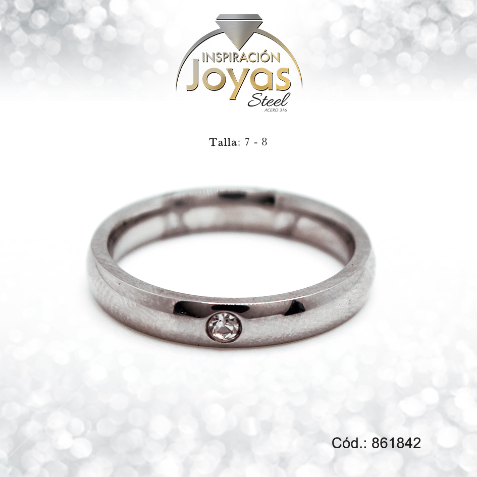 Anillo – Acero – Aro De Matrimonio – Plateado – Circon Blanco T: 8 – 86184280